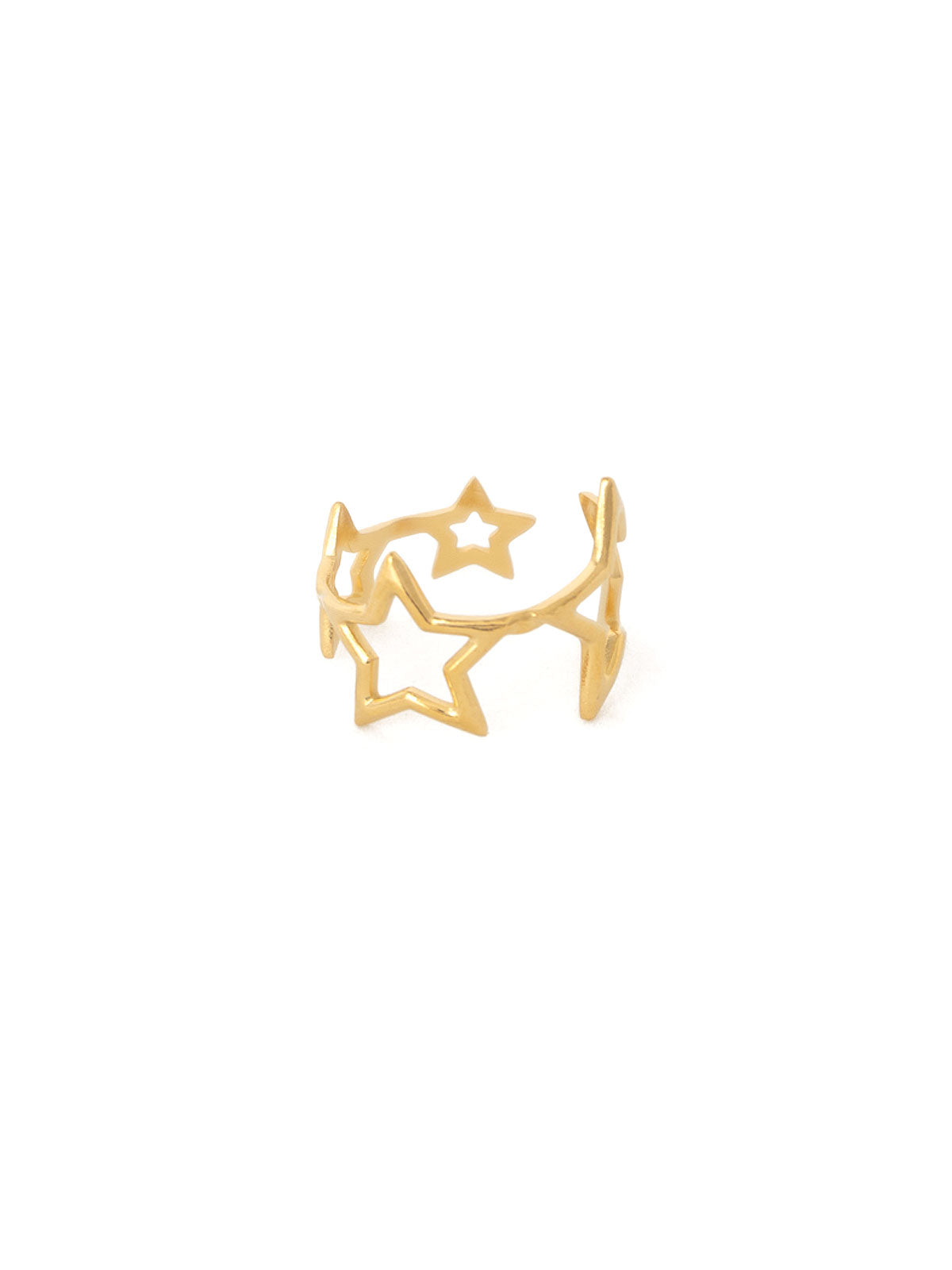 Destaca con nuestro hermoso anillo de estrellas ajustable en acero, disponible en un deslumbrante color dorado.