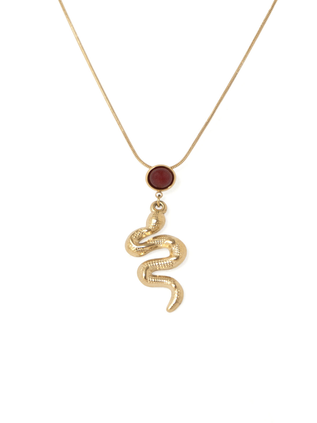 Añade un toque de intriga y estilo a tus accesorios con nuestro colgante dorado de serpiente en acero, complementado con un ojo en color marrón/rojo. Este colgante es una pieza única que te permitirá lucir un estilo único y cautivador.